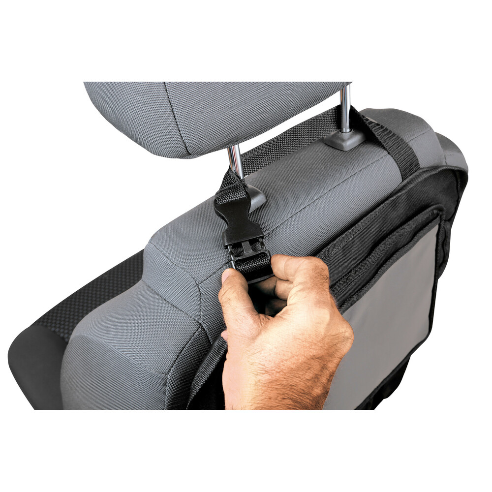 - Universel, se fixe facilement au dossier du siège avant à l’aide de la sangle et de la boucle fournies.