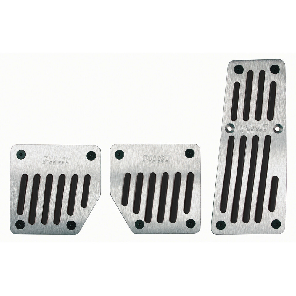 Set de 3 pédales en aluminium anodisé avec insertions en caoutchouc antidérapant. Montage à clip