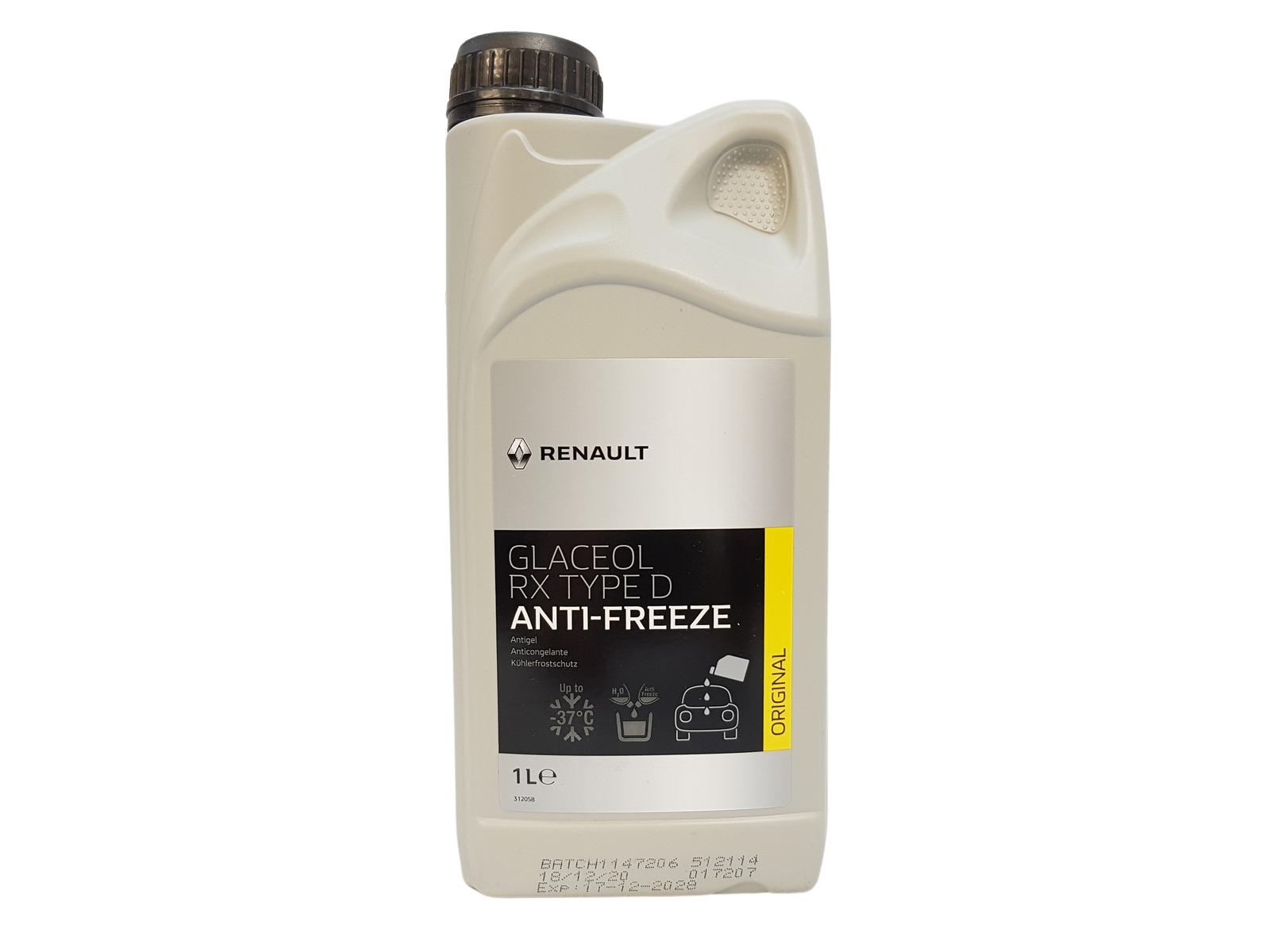 Concentré de liquide de refroidissement vert utilisé dans les systèmes de refroidissement Renault et Dacia. Le liquide protège le système de refroidissement contre le gel, la corrosion et l’entartrage. Conforme au niveau de qualité Renault « type D »
