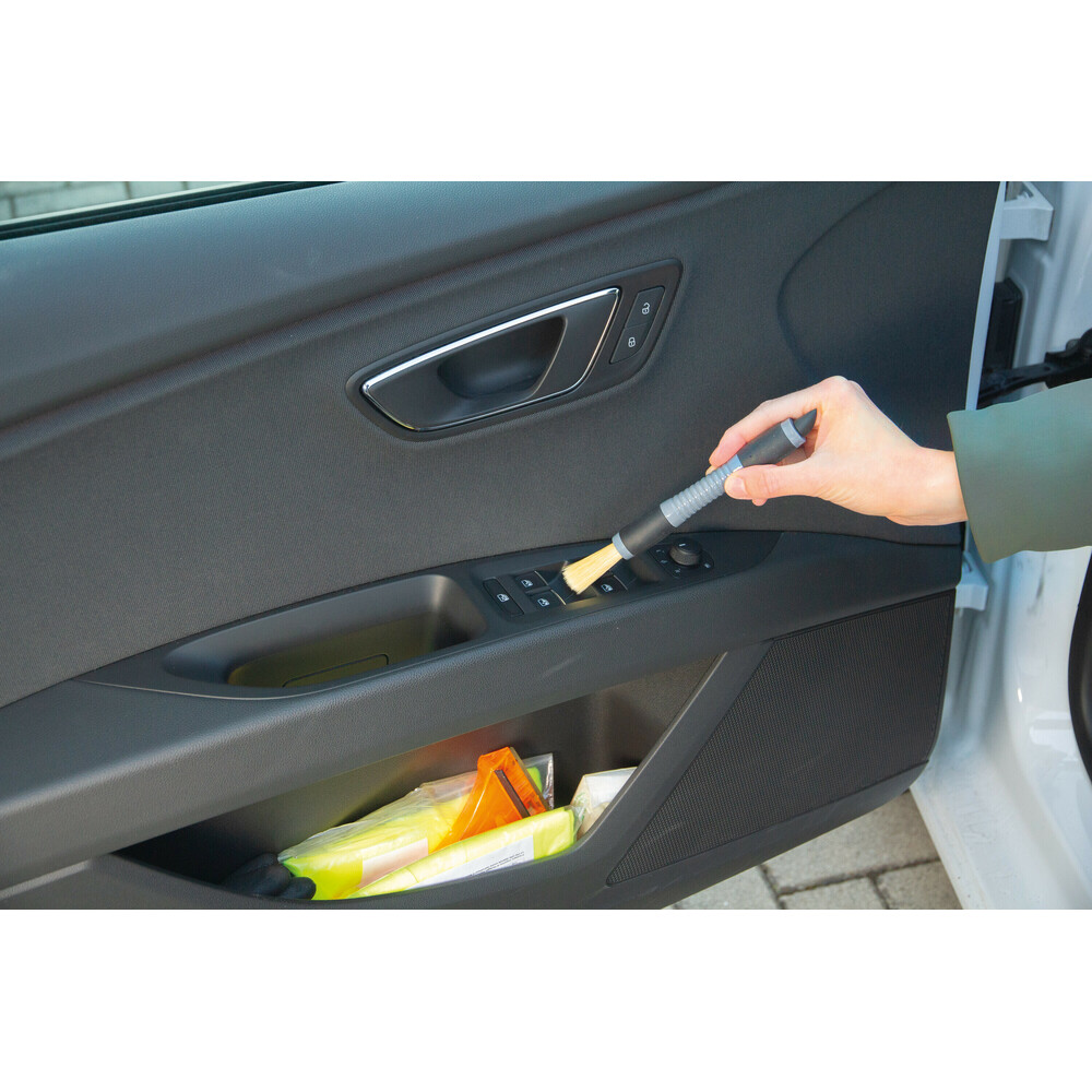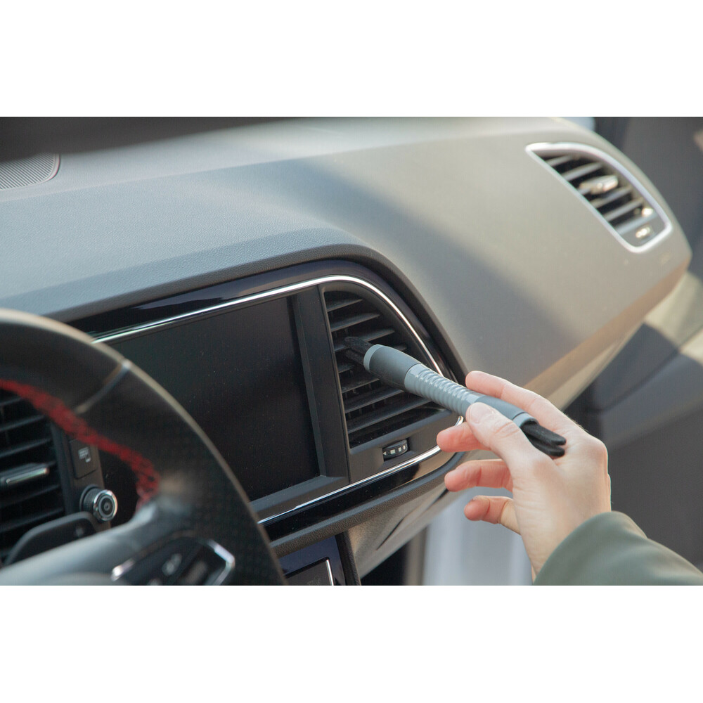- Brosse (2) à poils moyens pour tous les interstices et éliminer la saleté et la poussière des côtés des sièges et des petits espaces difficiles d’accès à l’intérieur de la voiture.