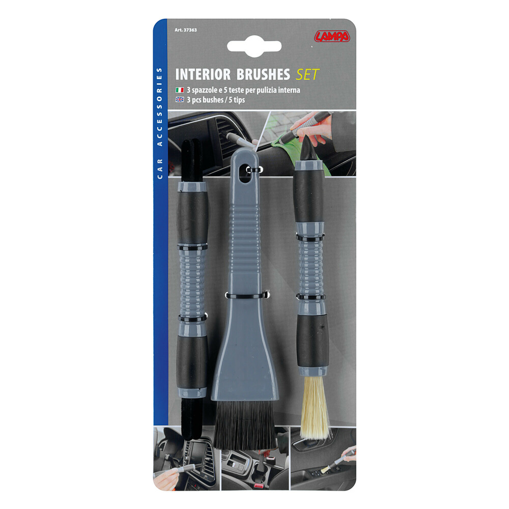 Set de 3 brosses et 5 têtes pour nettoyage intérieur