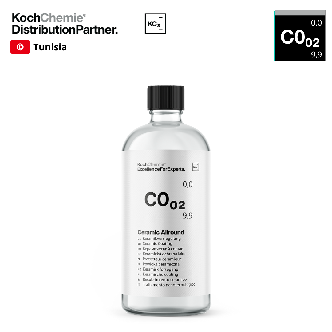 Le Ceramic Allround C0.02 est un revêtement céramique qui est utilisé sur de nombreuses surfaces pour leur donner une protection durable. La couche protectrice très mince se lie de façon permanente à la surface grâce à une réaction chimique. Cette réaction chimique est déclenchée par l’humidité. Le durcissement complet est obtenu après environ neuf jours. Le Ceramic Allround C0.02 crée une surface très hydrophobe avec un très bon comportement de déperlance. Grâce aux propriétés qui facilitent le nettoyage, la surface traitée peut être facilement et soigneusement nettoyée à la main. La brillance obtenue est conservée même après l’utilisation de nettoyants acides et alcalins. Le protecteur céramique durci protège la peinture des influences environnementales telles que les rayons UV, le sel de voirie, les déjections d’oiseaux et la rouille volante, réduit les dommages mécaniques et contribue ainsi de manière significative à maintenir ou à augmenter la valeur du véhicule.