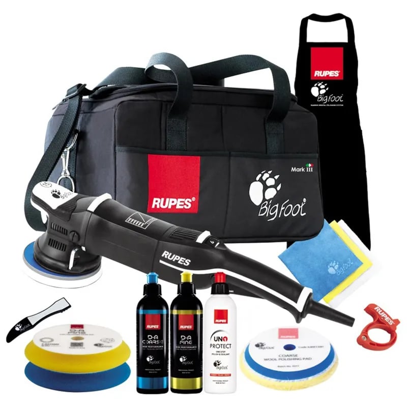 Le Bigfoot HLR21III de Rupes est livré sous forme de kit de luxe avec tout le nécessaire pour commencer immédiatement le polissage à double action.