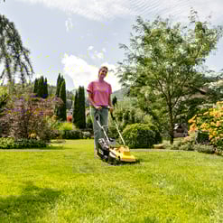Légère et maniable – avec une largeur de coupe de 32 cm, la tondeuse sur batterie LMO 2-18 Battery Set est idéale pour de petites surfaces jusqu’à 250 m². La hauteur de coupe peut être réglée sur cinq niveaux, de 25 à 60 mm. Equipé d’un moteur sans charbon dit « Brushless » utilisant plus efficacement le puissance électrique de la batterie et assurant une meilleure durée de vie de la machine. Lors de la tonte des bords ou des bordures, les peignes à gazon redressent les brins d’herbe, ce qui permet de ne rater aucun brin. L’herbe coupée est ramassée dans le bac souple de 30 litres. La poignée est réglable en hauteur et assure une position droite et confortable lors de la tonte, la conception pliante permet un rangement peu encombrant. La poignée de transport peut également être utilisée pour transporter la tondeuse partout où elle est nécessaire, par exemple en montant ou en descendant des marches. Une batterie 18 V et 5 Ah et un chargeur rapide sont inclus dans la livraison. Fait partie de la plateforme batterie Power 18 V, compatible avec une treintaine de produits.