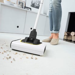 Le balai électrique sans fil KB 5 est l’appareil idéal pour le nettoyage d’appoint pour les sols durs et les moquettes. Le KB 5 fonctionnant grâce à une batterie lithium-ion possède un format compact et fournit une puissance de nettoyage exceptionnelle. Ce balai électrique sans fil et peu encombrant élimine toute les saletés visibles à l’aide de la brosse universelle. Avec sa double articulation flexible, il accède aisément entre les chaises et sous les meubles, nettoie sans problèmes les escaliers et balaie efficacement jusqu’aux bords des murs. Par ailleurs, il peut être utilisé sans avoir à se pencher et dispose d’une fonction Marche/Arrêt automatique ainsi que d’un bac à déchets amovible latéralement.