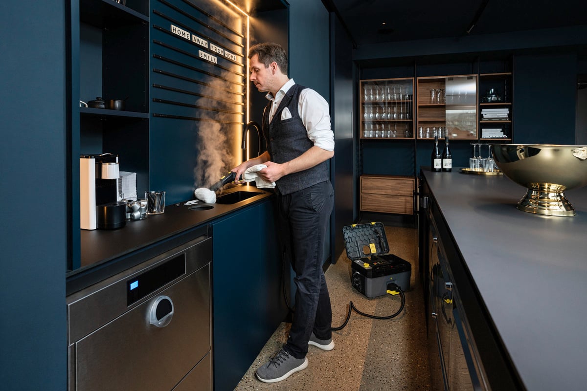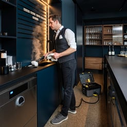 Très compact, robuste et durable grâce à son design tout-en-un unique, doté en plus d’un équipement complet et particulièrement facile d’utilisation : le nettoyeur vapeur SG 4/2 Classic s’illustre par d’excellents résultats de nettoyage, un rapport qualité-prix exceptionnel et une rentabilité maximale. Cet appareil léger avec un poids de 7,5 kilogrammes est le nettoyeur vapeur professionnel le plus compact de sa catégorie. Il est prêt à l’emploi en seulement trois minutes et offre des réserves plus que suffisantes avec une pression de la vapeur de 4 bar pour un nettoyage en profondeur et un assainissement sans utilisation de produits chimiques. Les comptoirs, les installations de débit de boissons, le carrelage, les plaques de cuisson, les fours ou autres sont nettoyés jusque dans les derniers interstices, peu importe leur degré d’encrassement. Dans les cas les plus tenaces, la fonction VapoHydro activable apporte son aide grâce à l’eau chaude et élimine efficacement même les salissures importantes et les graisses, tandis que le réservoir à eau est amovible et remplissable à tout moment. Les accessoires inclus tels que le flexible vapeur, le suceur à main, la buse à jet crayon, la Powerbuse, la brosse ronde, la brosse plate, le racloir vapeur et la bonnette microfibres se rangent tous directement dans l’appareil et en option, un suceur pour sol est également disponible.