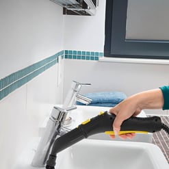 Le nettoyeur vapeur d’entrée de gamme SC 2 EasyFix est à la fois simple et intuitif. L’intensité de la vapeur peut être adaptée à la surface et au degré de saleté grâce au réglage à deux positions. Un compartiment pour accessoires situé sur l’appareil et le point d’ancrage pour la buse de sol viennent compléter de manière utile ce modèle, pour un nettoyage à la vapeur encore plus simple. La buse de sol EasyFix à articulation flexible offre une ergonomie maximale et la technologie de lamelles brevetée assure un nettoyage optimal. Grâce au système à velcros pratique, la serpillère microfibres est facile et rapide à fixer sans toucher la saleté. Le nettoyeur vapeur Kärcher SC 2 EasyFix nettoie sans utiliser de produits chimiques et peut être employé partout. Un nettoyage en profondeur permet d’éliminer 99,99 % des bactéries domestiques communes des surfaces dures habituelles. En utilisant les nombreux accessoires, vous pourrez nettoyer carrelage, cuisinière et hotte aspirante jusque dans les moindres interstices. Même les saletés incrustées disparaîtront.