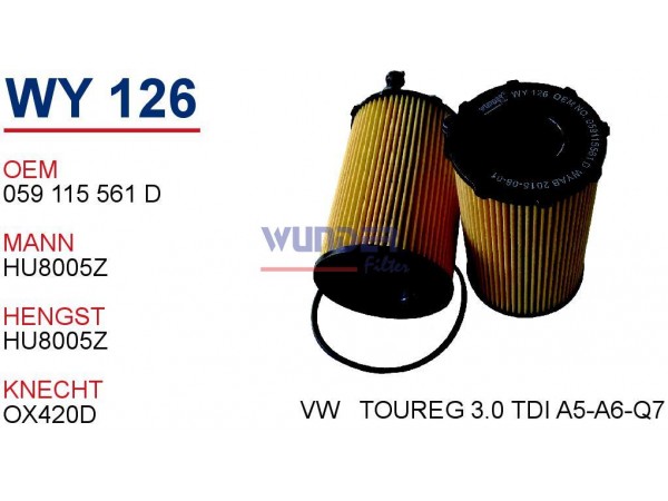 Filtre à Huile AUDI VW WY126 MISFAT L186